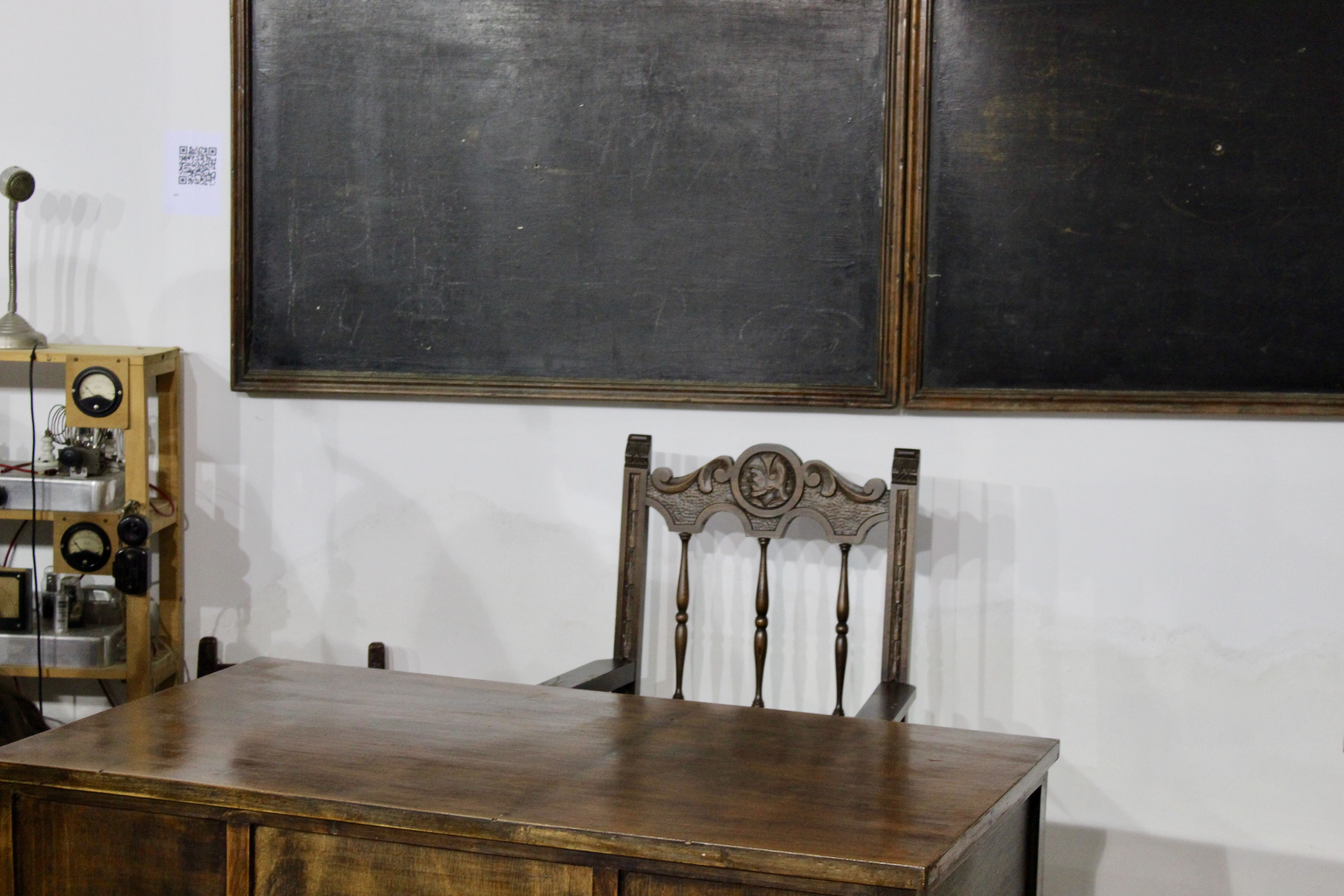 Mesa y silla antiguas del profesor